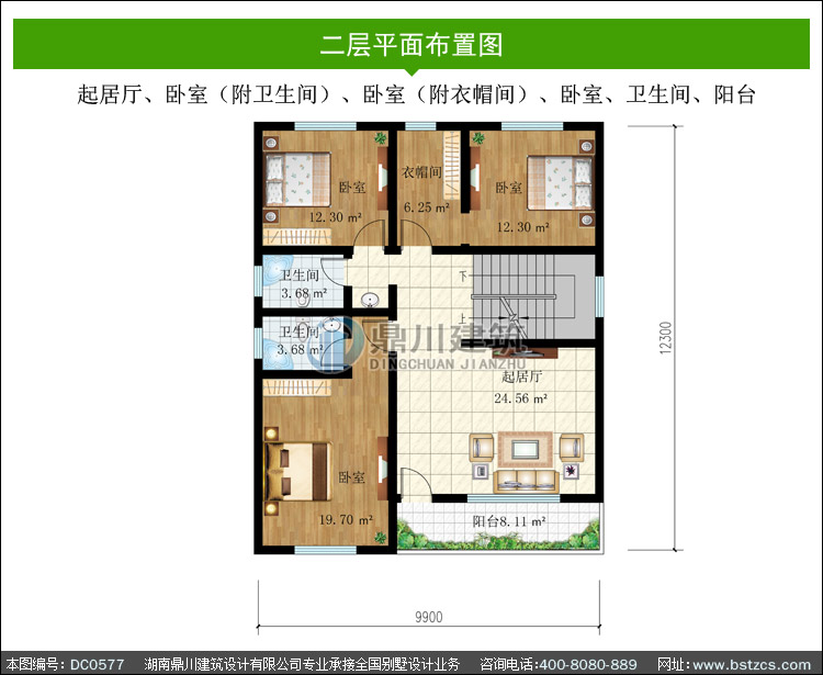 | 二 層: | 起居廳、臥室(附衛(wèi)生間)、臥室(附衣帽間)、臥室、衛(wèi)生間、陽(yáng)臺(tái) | |||