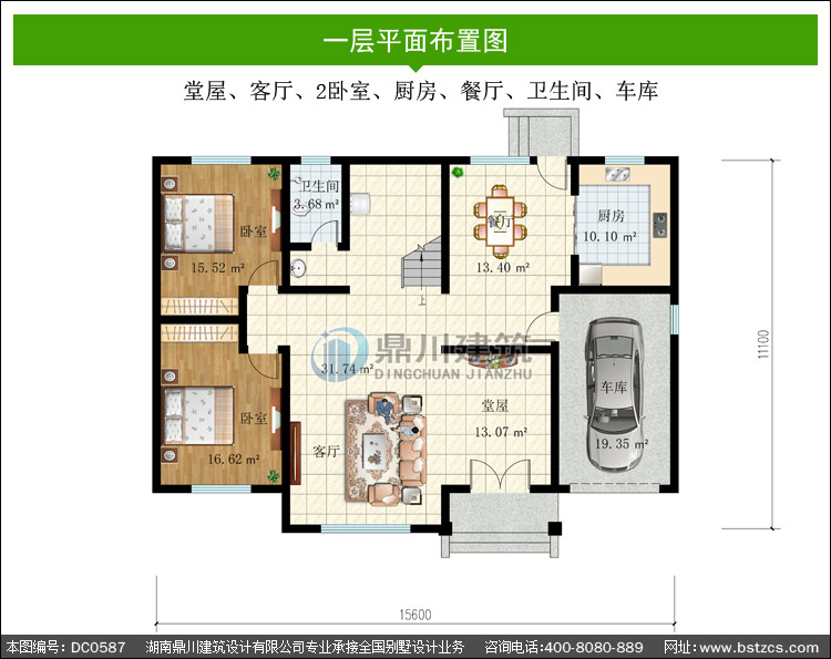 | 一 層: | 堂屋、客廳、2臥室、廚房、餐廳、衛(wèi)生間、車(chē)庫(kù) | |||