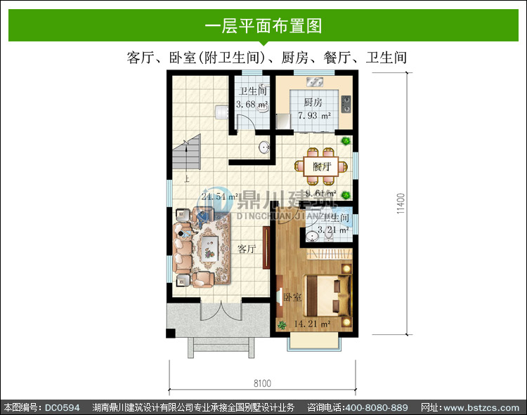 | 一 層: | 客廳、臥室(附衛(wèi)生間)、廚房、餐廳、衛(wèi)生間 | |||