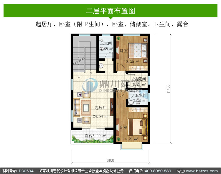 | 二 層: | 起居廳、臥室(附衛(wèi)生間)、臥室、儲藏室、衛(wèi)生間、露臺 | |||