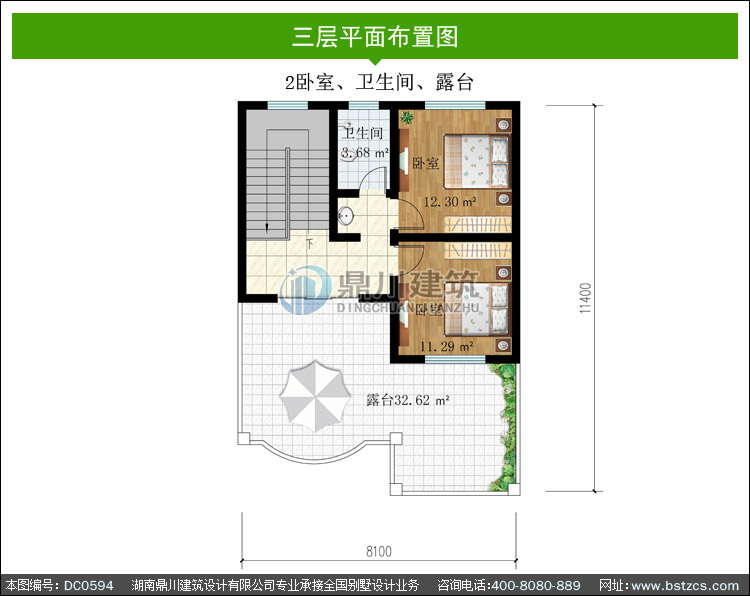 | 三 層: | 2臥室、衛(wèi)生間、露臺 | |||