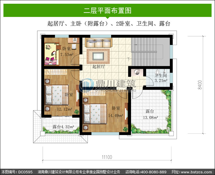 | 二 層: | 起居廳、主臥(附露臺)、2臥室、衛(wèi)生間、露臺 | |||