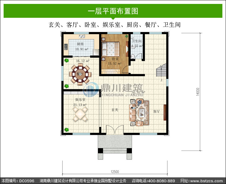 | 一 層: | 玄關(guān)、客廳、臥室、娛樂室、廚房、餐廳、衛(wèi)生間 | |||