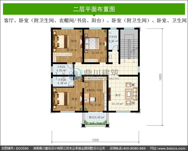 | 二 層: | 客廳、臥室(附衛(wèi)生間、衣帽間/書房、陽臺)、臥室(附衛(wèi)生間)、臥室、 衛(wèi)生間 | |||