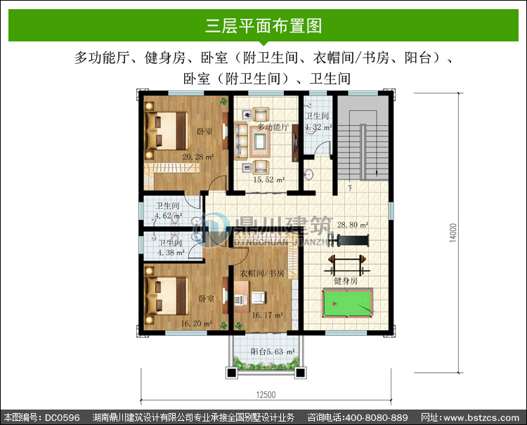 簡歐三層帶陽臺別墅設(shè)計圖紙_新農(nóng)村別墅戶型圖設(shè)計,鼎川建筑