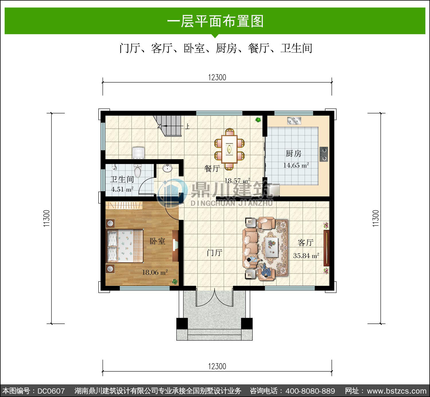 | 一 層: | 門廳、客廳、臥室、廚房、餐廳、衛(wèi)生間 | |||
