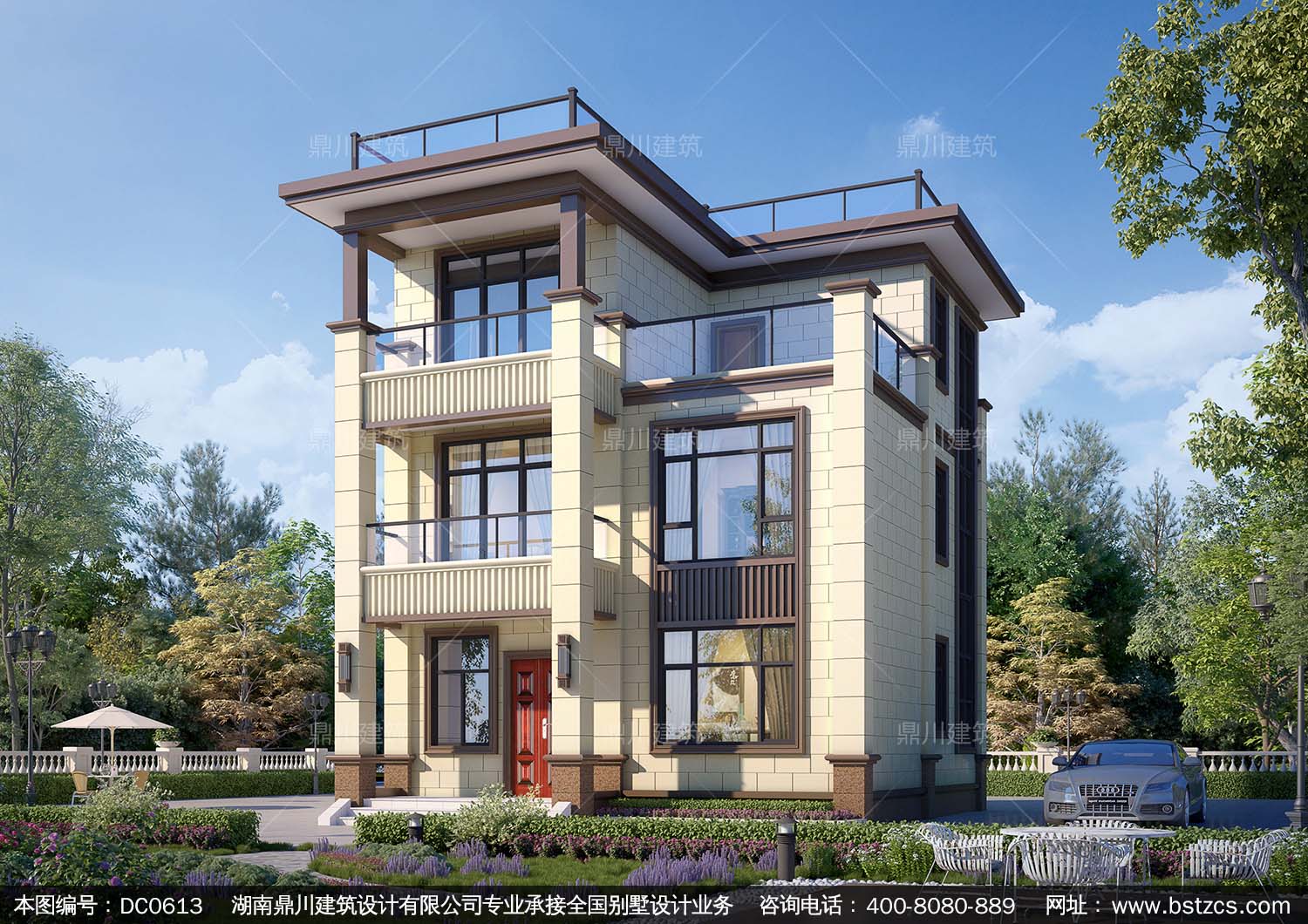新中式三層平頂別墅設(shè)計(jì)效果圖及施工圖_農(nóng)村三層自建房屋設(shè)計(jì)圖紙,鼎川建筑