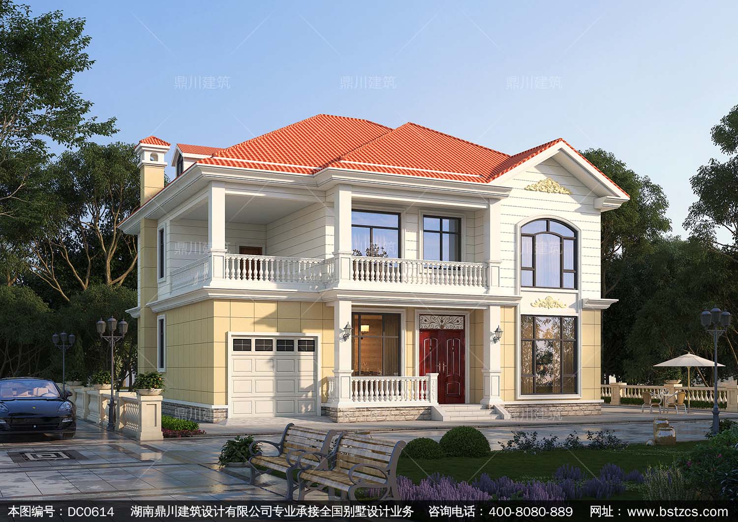新農(nóng)村二層帶車庫別墅效果圖及施工圖_農(nóng)村房屋設(shè)計圖紙,鼎川建筑