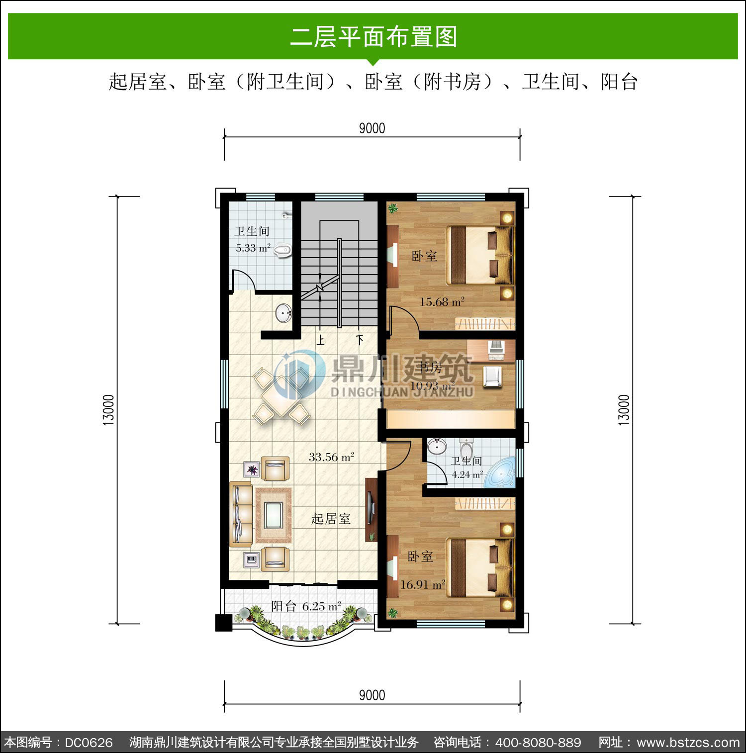 | 二 層: | 起居室、臥室(附衛(wèi)生間)、臥室(附書房)、衛(wèi)生間、陽(yáng)臺(tái) | |||