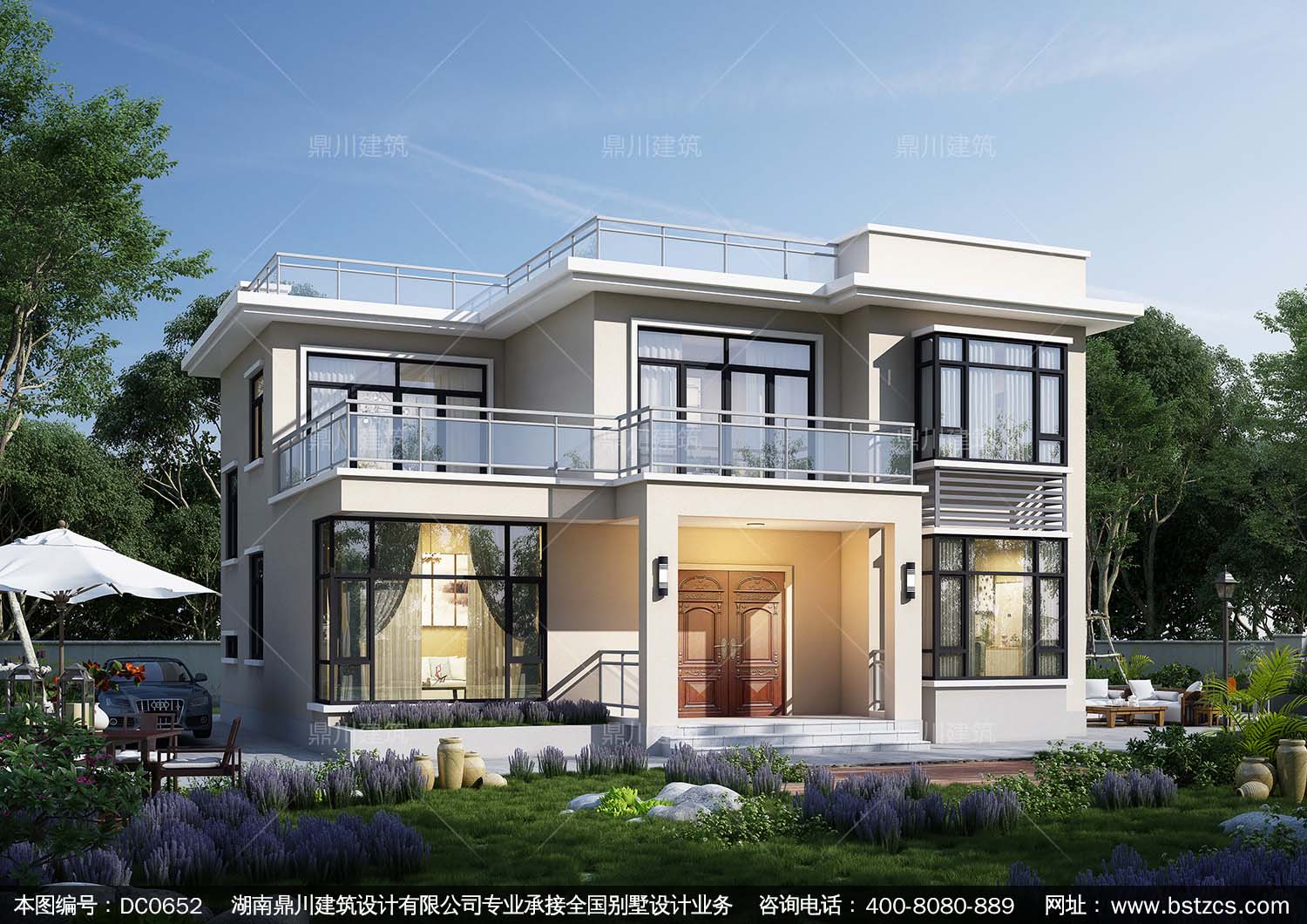 二層現(xiàn)代風(fēng)格平頂自建房屋設(shè)計(jì)圖紙及效果圖_農(nóng)村兩層帶露臺(tái)小別墅設(shè)計(jì)圖紙,鼎川建筑
