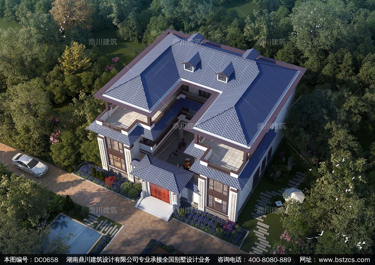三層新中式風(fēng)格三合院施工圖紙及效果圖_農(nóng)村小三合院設(shè)計(jì),鼎川建筑