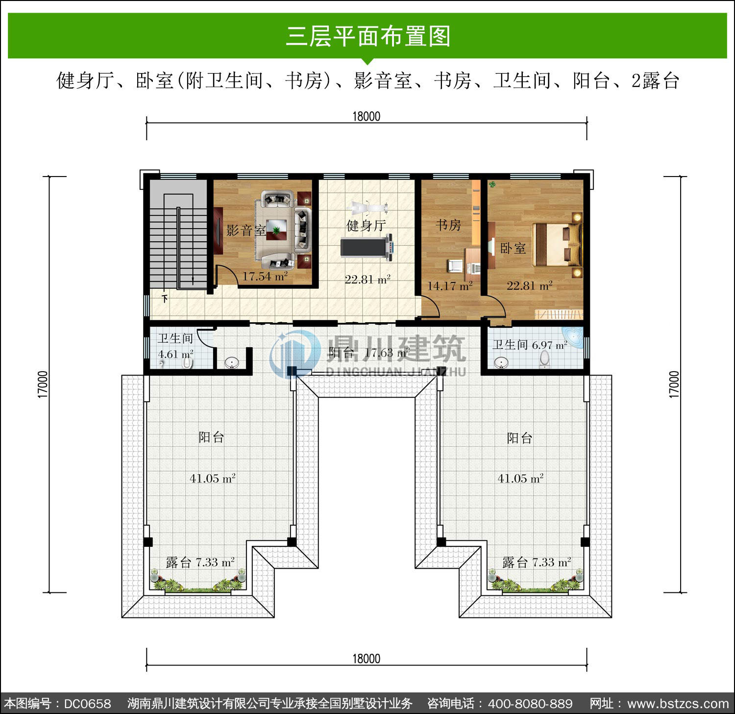 | 三 層: | 健身廳、臥室(附衛(wèi)生間、書房)、影音室、書房、衛(wèi)生間、陽臺(tái)、2露臺(tái) | |||
