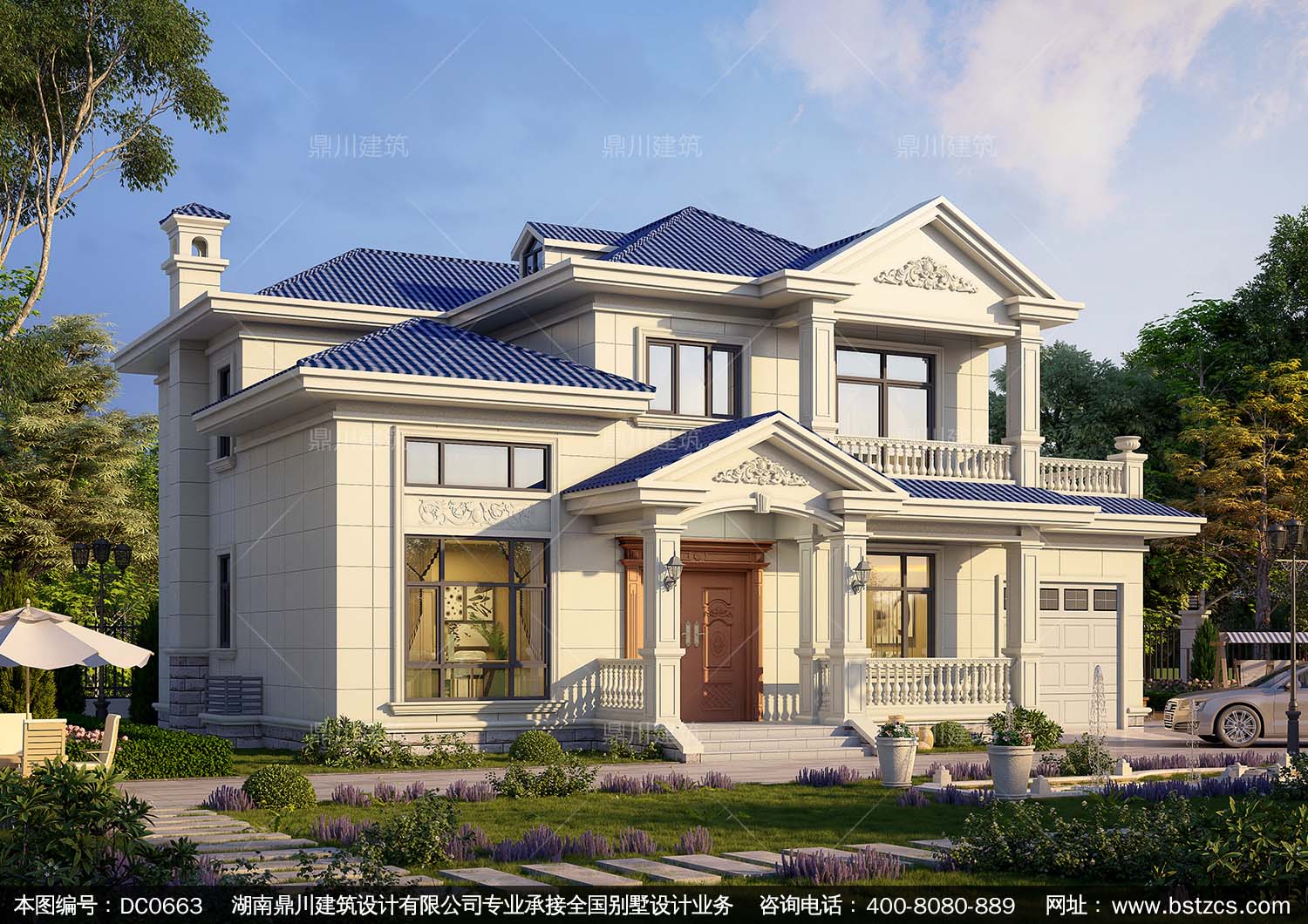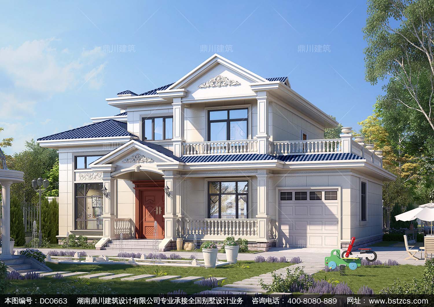 新農(nóng)村歐式二層帶車庫別墅施工圖及效果圖_兩層自建房設(shè)計圖紙,鼎川建筑