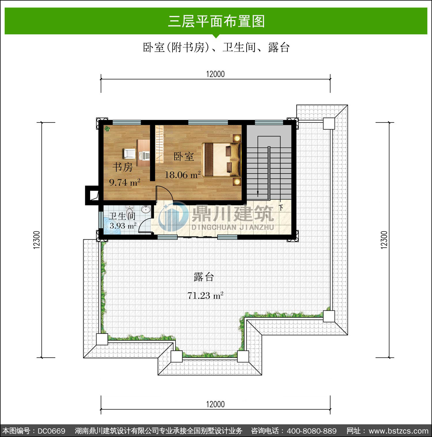 三 層: 臥室(附書房)、衛(wèi)生間、露臺