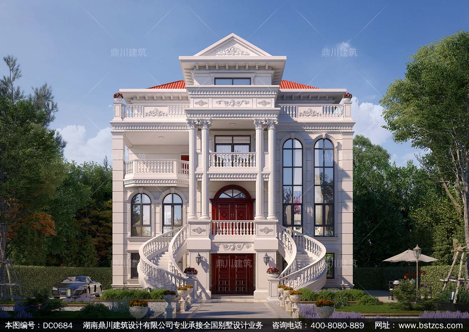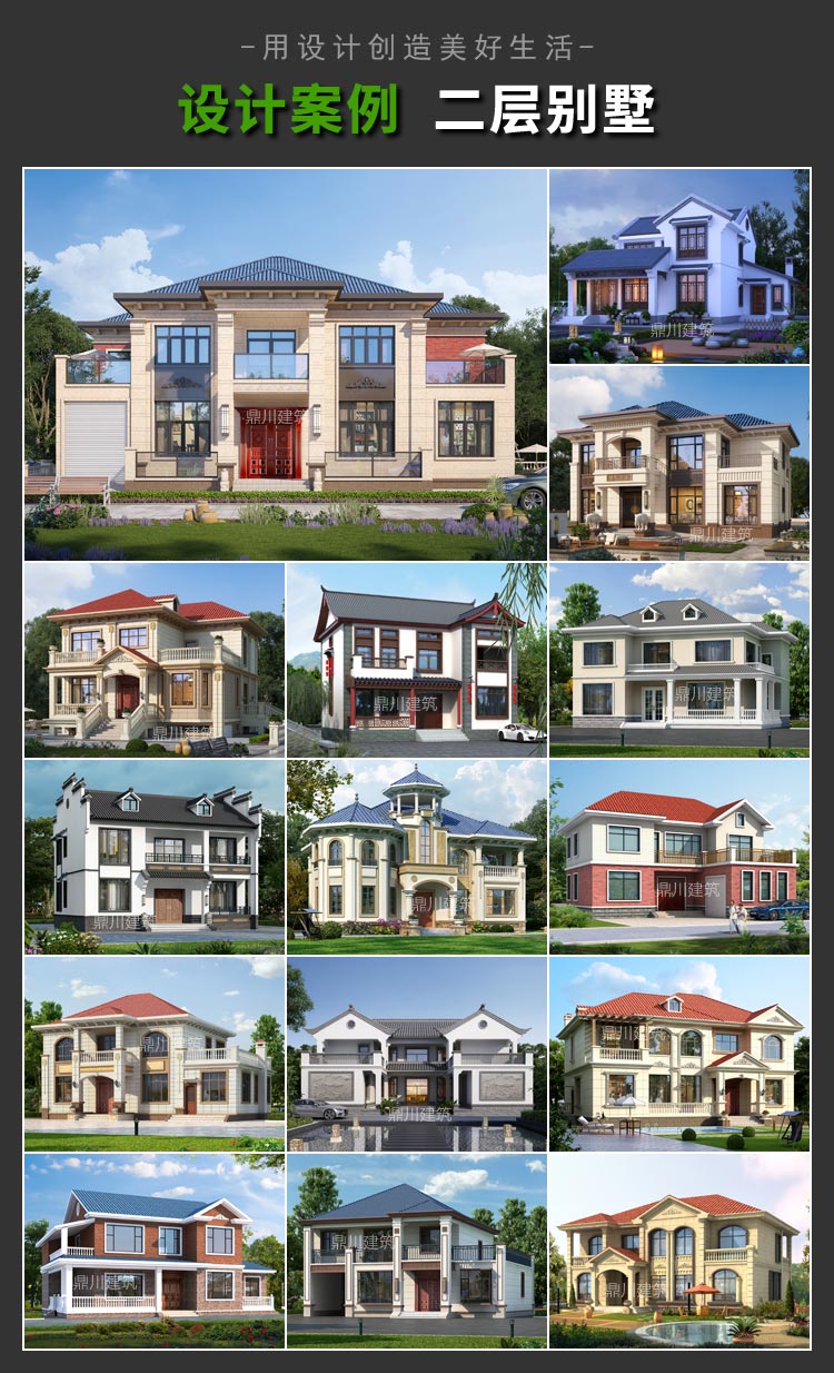 四層帶電梯歐式別墅效果圖及施工圖紙_新農(nóng)村四層復式帶車庫自建別墅設計,鼎川建筑