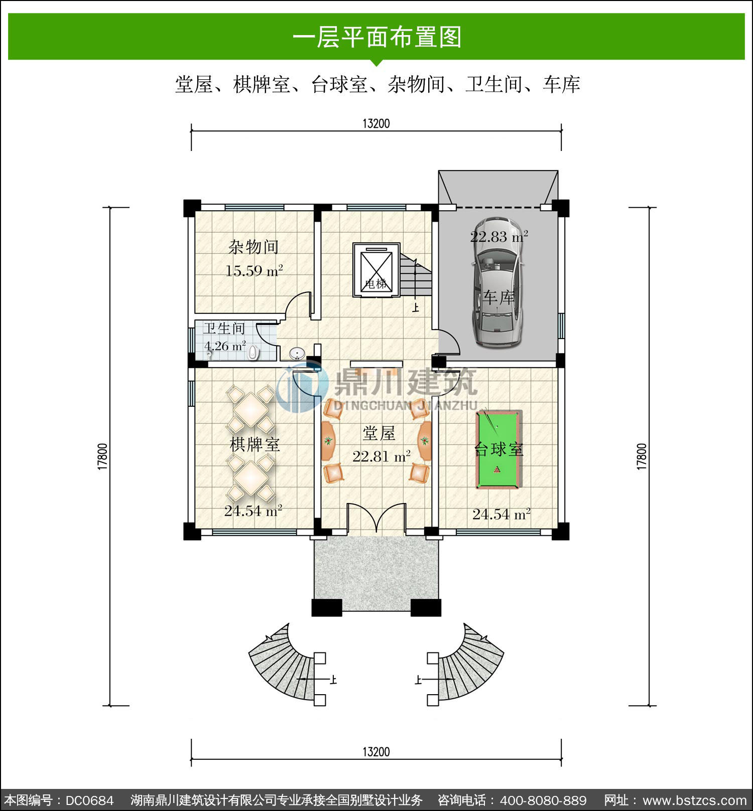 | 一 層: | 堂屋、棋牌室、臺球室、雜物間、衛(wèi)生間、車庫 | |||