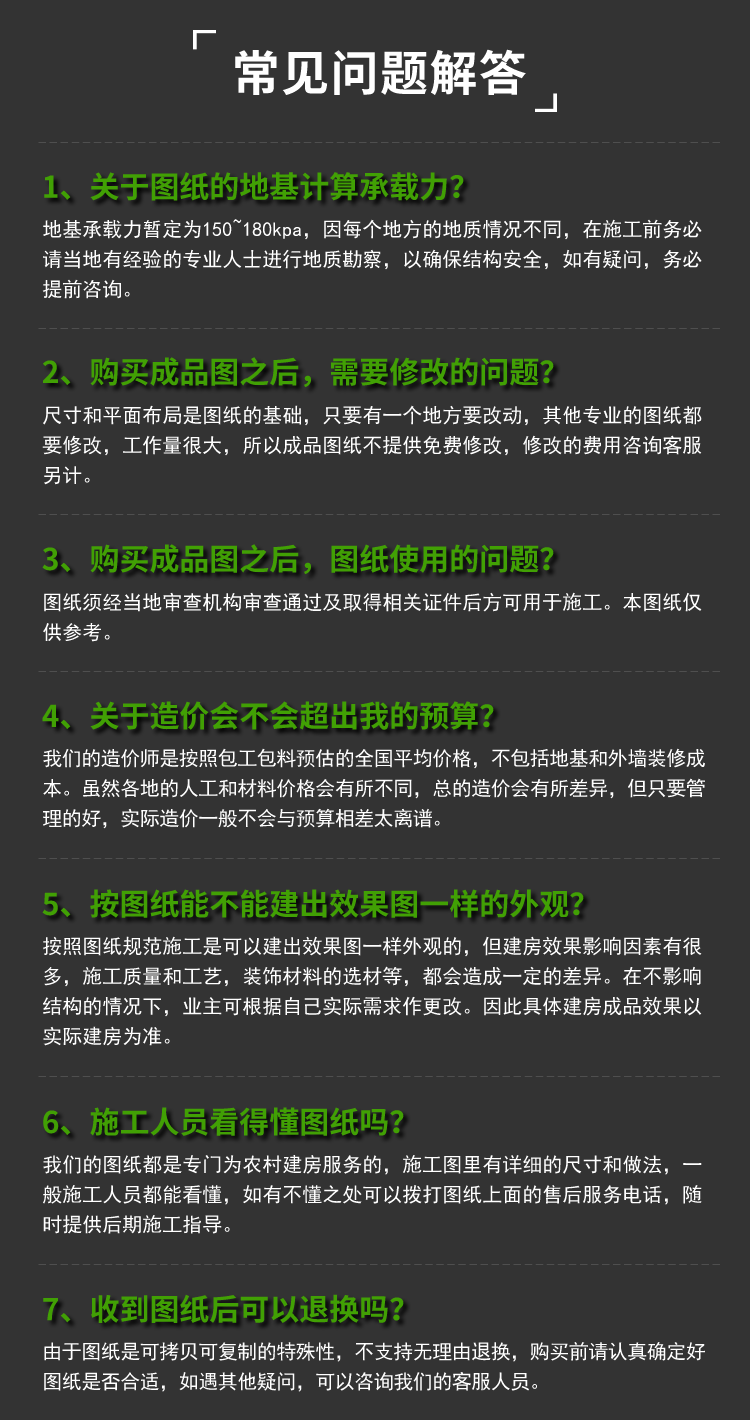 購買本套圖紙僅提供打印好的圖紙一份,我們不出售電子文件、光盤。我們設計的圖紙非常詳細,用A3規(guī)格打印圖紙,比傳統(tǒng)藍圖更清晰、容易復印、方便收藏,可以直接應用到施工現(xiàn)場。售后服務僅為圖紙答疑,不包任何修改,因為只要其中一張圖紙改變,其它圖紙相應均需修改,工作量較大,所以我們不包修改。如果您個性要求較多需按要求訂做設計,請查看 別墅設計業(yè)務流程,并聯(lián)系設計客服咨詢設計收費標準。