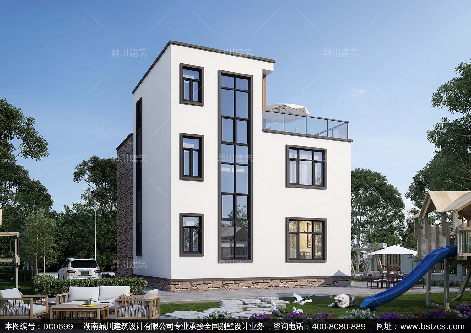 新農村現代三層簡約別墅設計圖紙及效果圖_鄉(xiāng)村三層平屋頂別墅設計圖紙,鼎川建筑