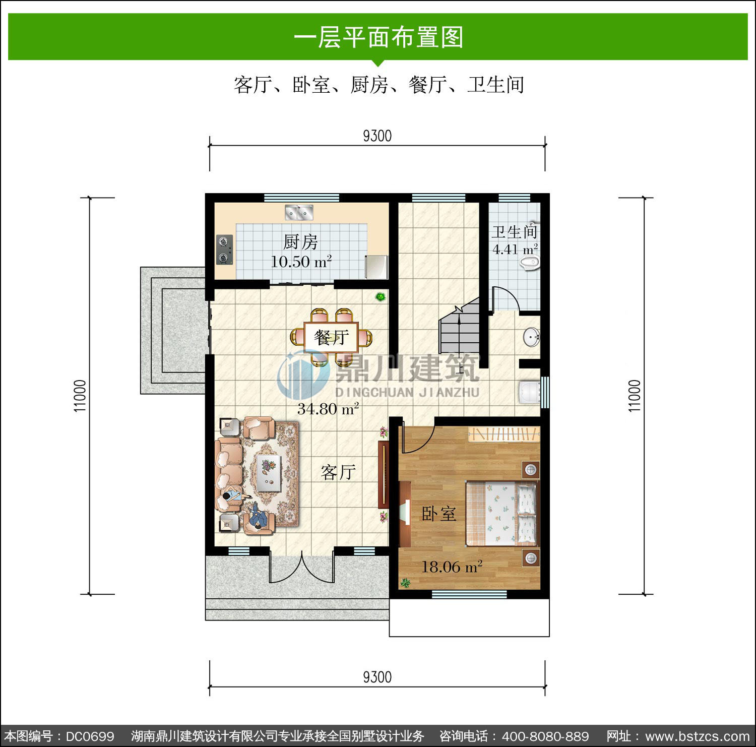 | 一 層: | 客廳、臥室、廚房、餐廳、衛(wèi)生間 | |||