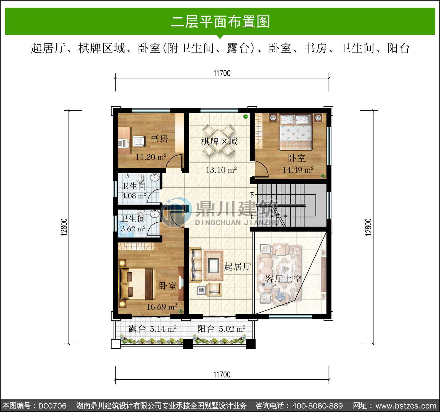 | 二 層: | 起居廳、棋牌區(qū)域、臥室(附衛(wèi)生間、露臺)、臥室、書房、衛(wèi)生間、陽臺 | |||