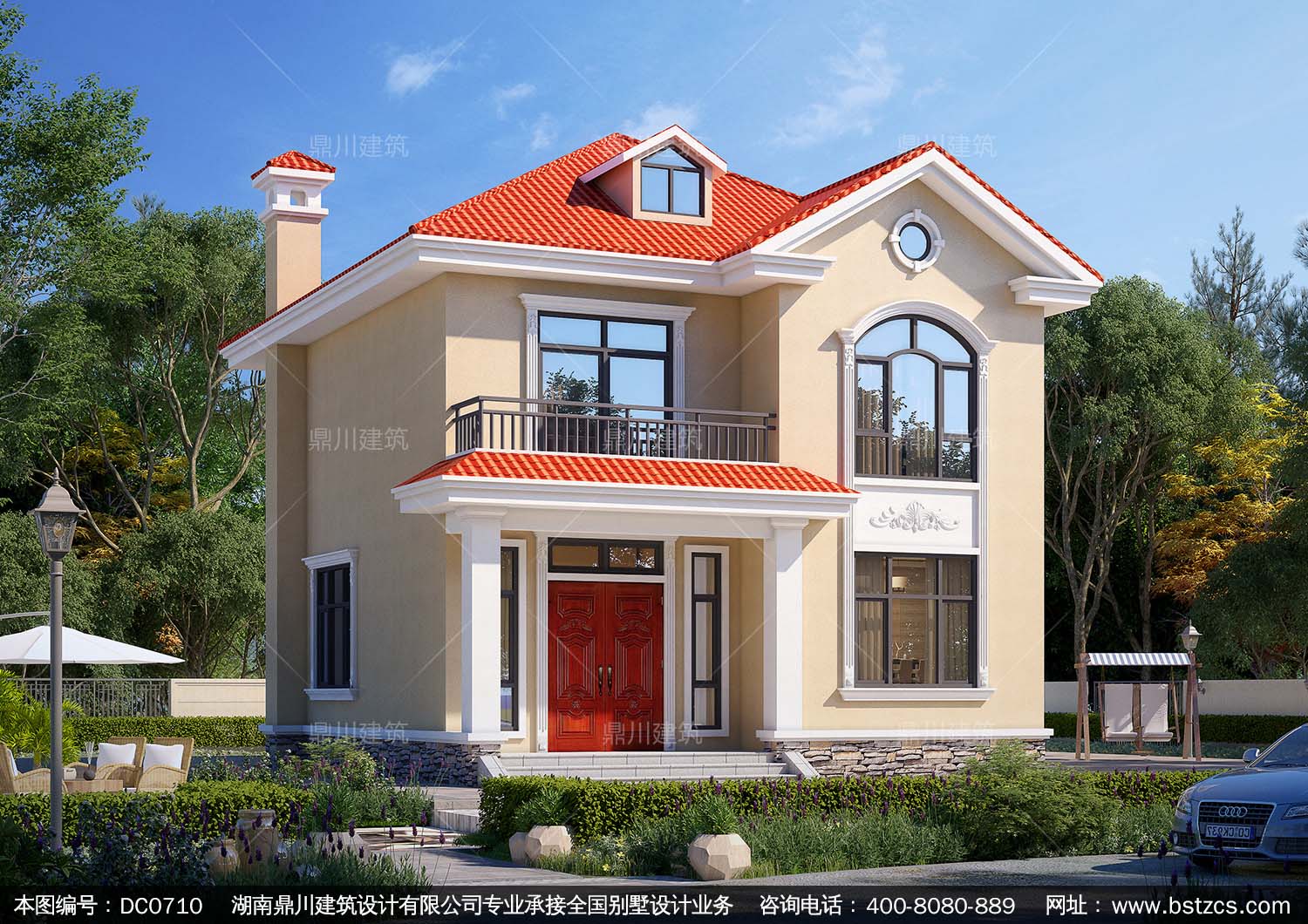 歐式二層帶露臺實用小戶型別墅設計圖紙_新農村自建房屋設計效果圖,鼎川建筑