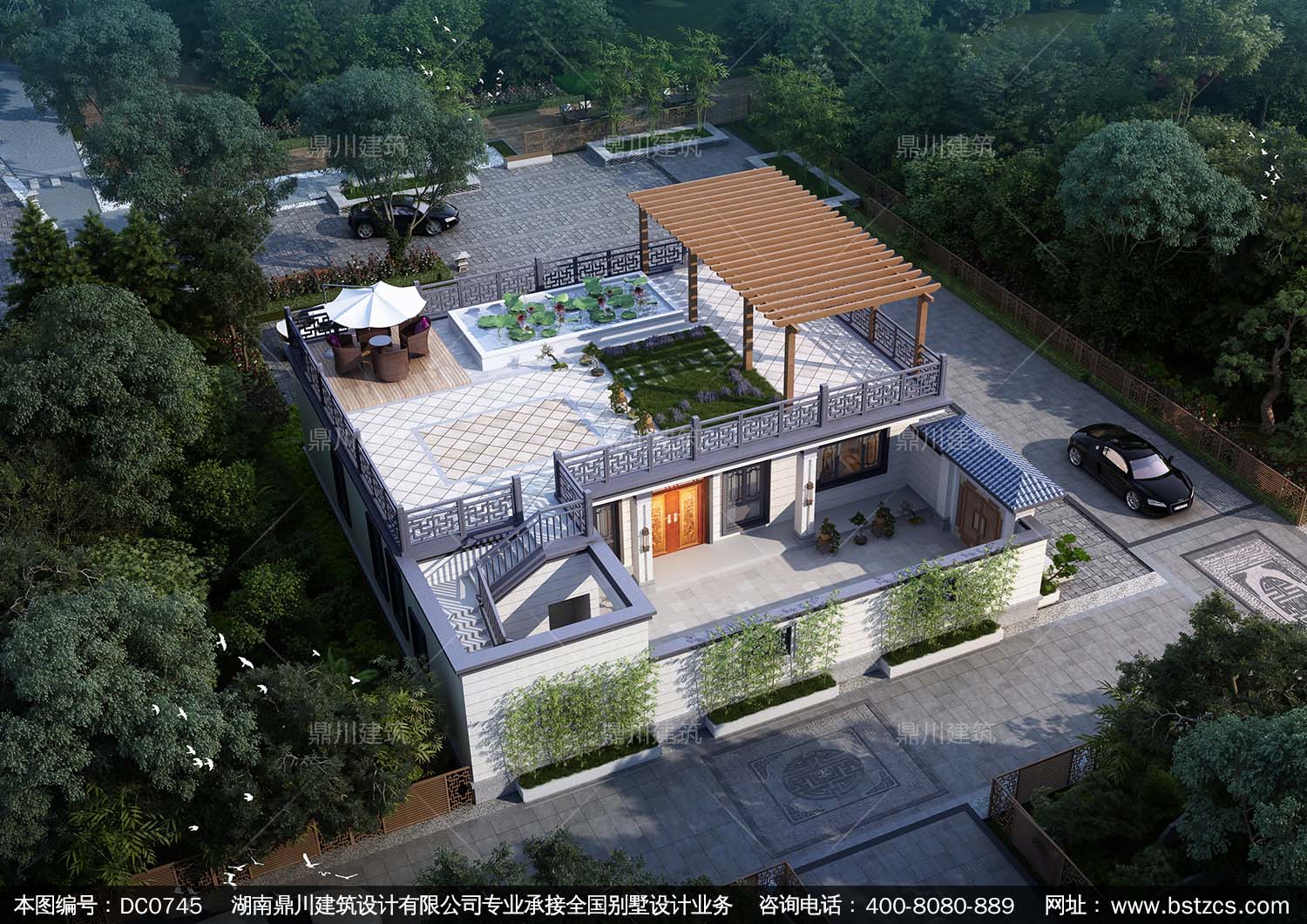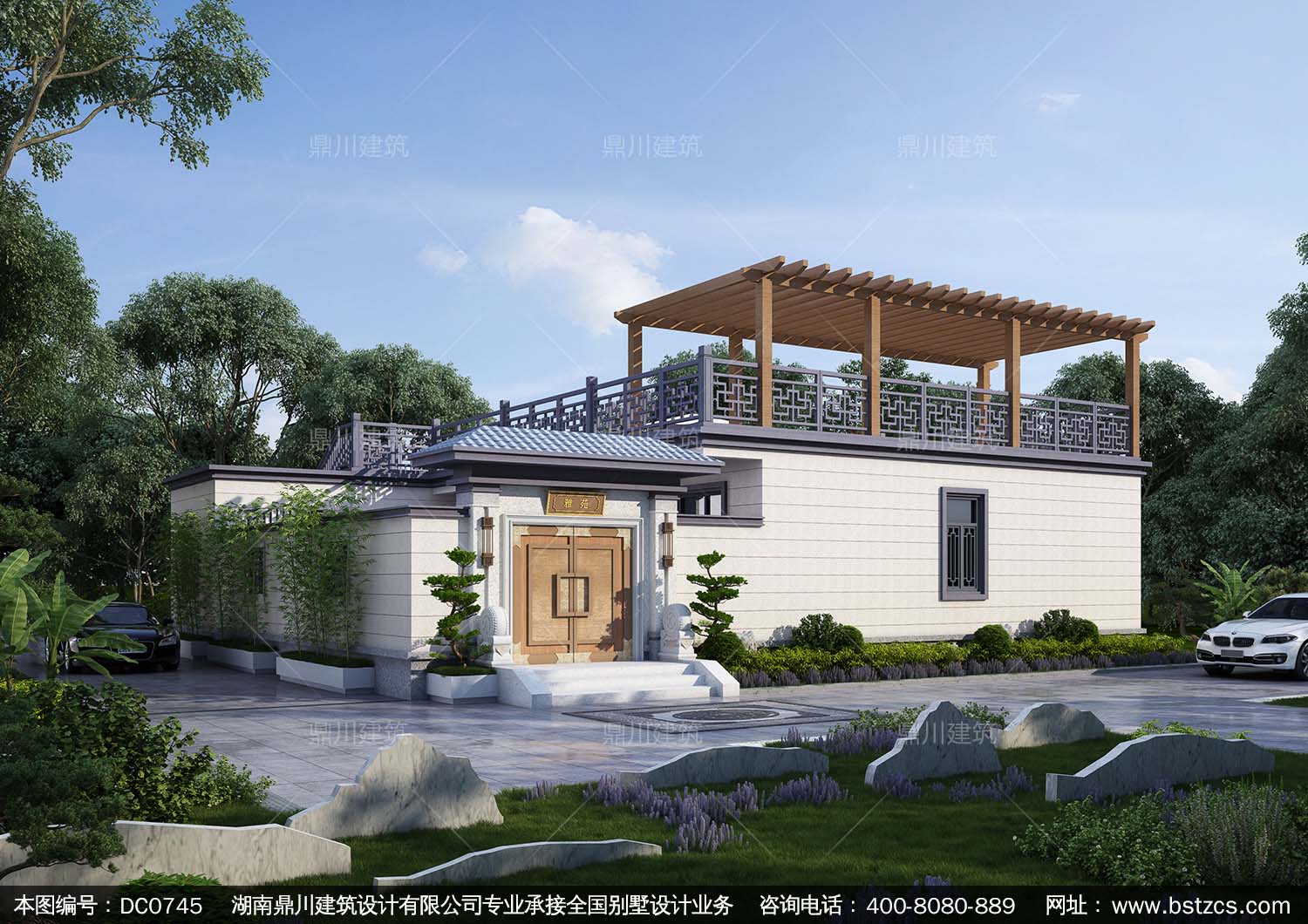 一層帶院子新中式房屋設(shè)計圖紙及效果圖_農(nóng)村自建平房設(shè)計,鼎川建筑
