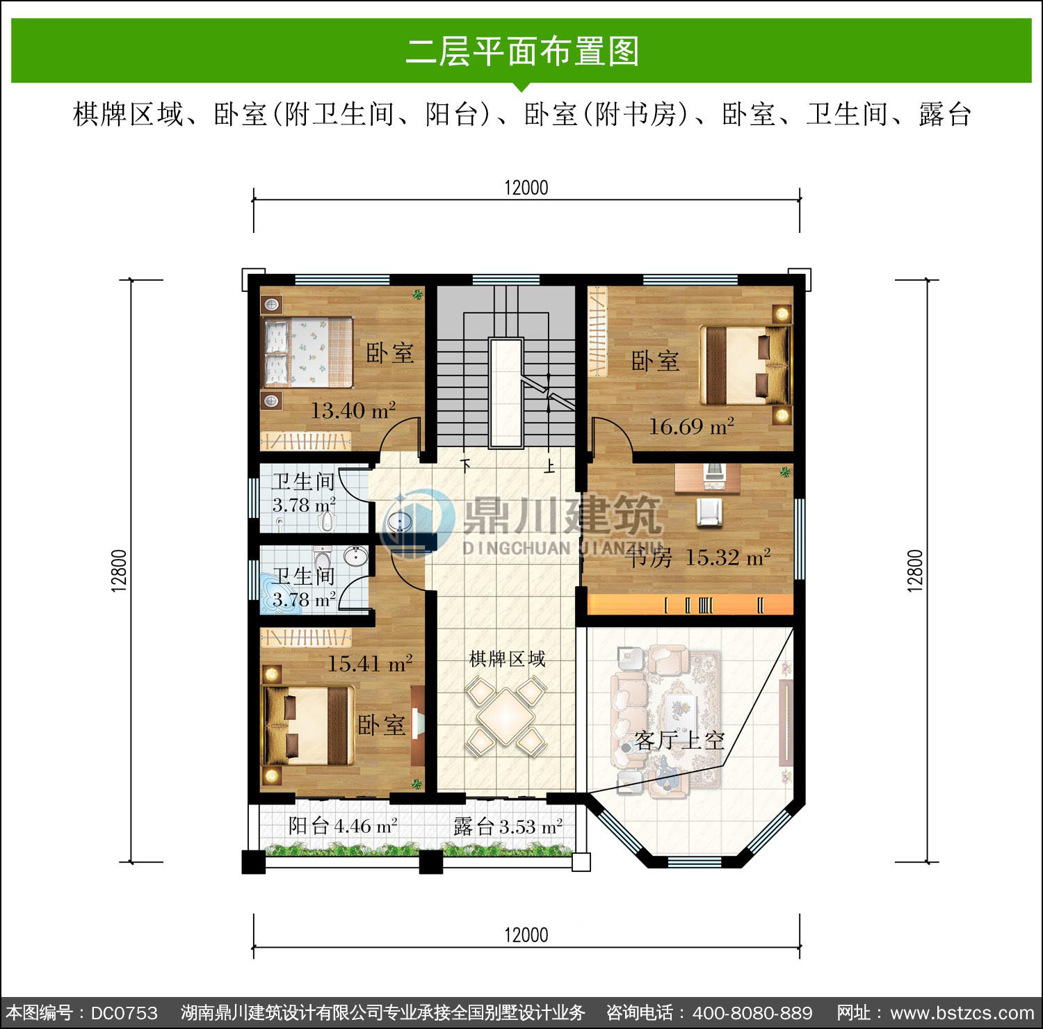 | 二 層: | 棋牌區(qū)域、臥室(附衛(wèi)生間、陽臺)、臥室(附書房)、臥室、衛(wèi)生間、露臺 | |||