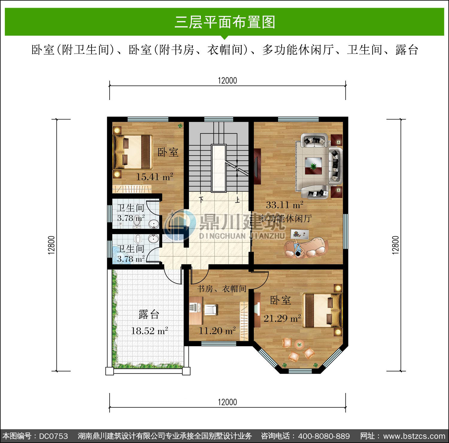 復(fù)式三層帶露臺別墅圖紙及外觀效果圖_鄉(xiāng)村自建房設(shè)計,鼎川建筑