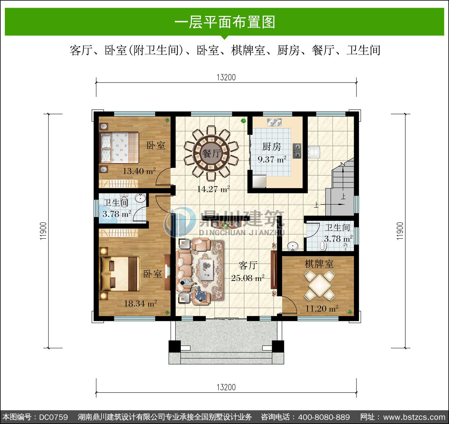 一 層: 客廳、臥室(附衛(wèi)生間)、臥室、棋牌室、廚房、餐廳、衛(wèi)生間