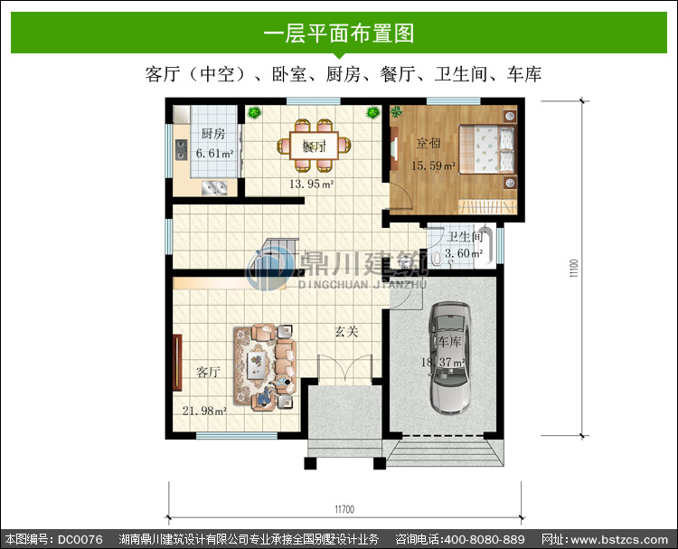 | 一 層: | 客廳(中空)、臥室、廚房、餐廳、衛(wèi)生間、車庫 | |||