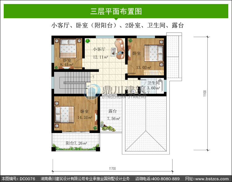 | 三 層: | 小客廳、臥室(附陽臺)、2臥室、衛(wèi)生間、露臺 | |||