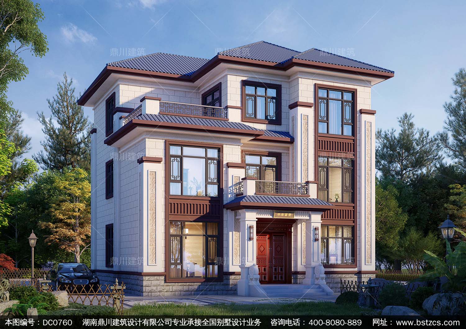 漂亮的三層新中式別墅設(shè)計圖紙及效果圖_農(nóng)村別墅設(shè)計,鼎川建筑
