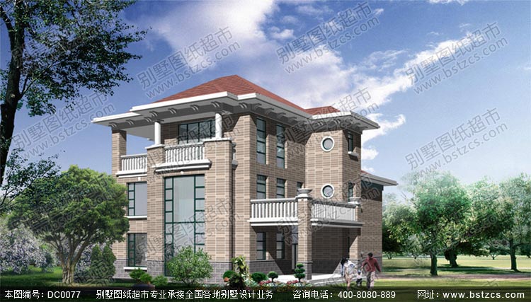 時尚三層帶車庫露臺別墅設計圖紙_別墅設計圖紙,農村房屋設計圖