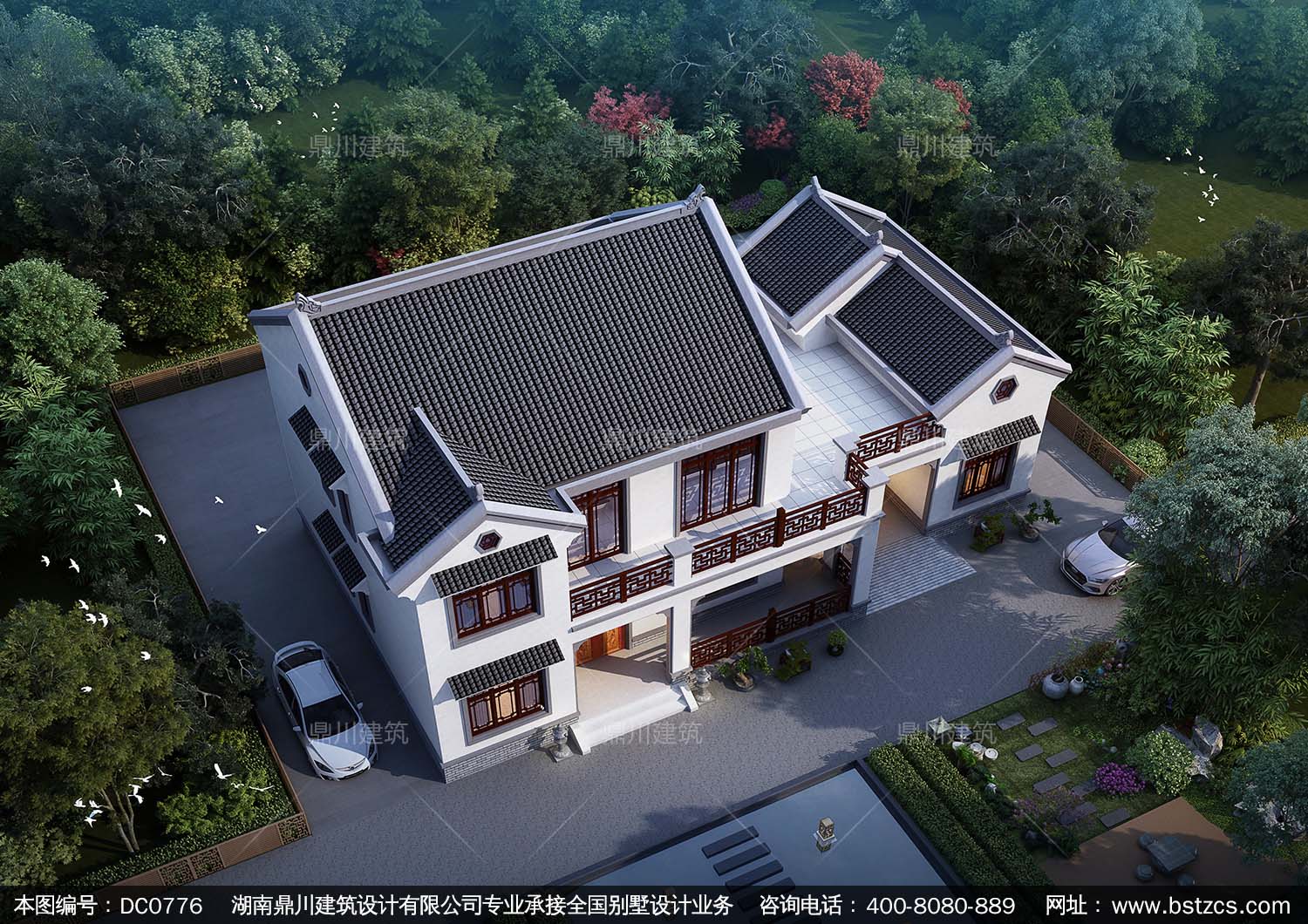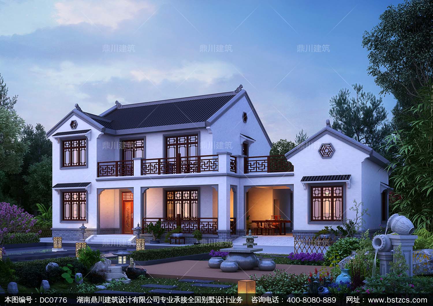 中式二層帶露臺自建房施工圖紙及效果圖_農(nóng)村別墅設(shè)計,鼎川建筑