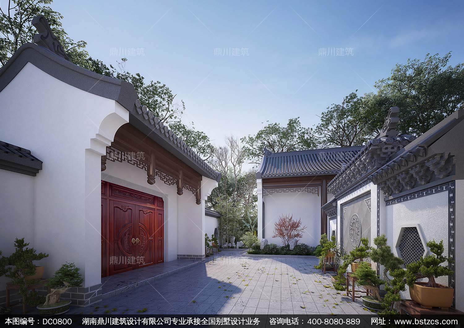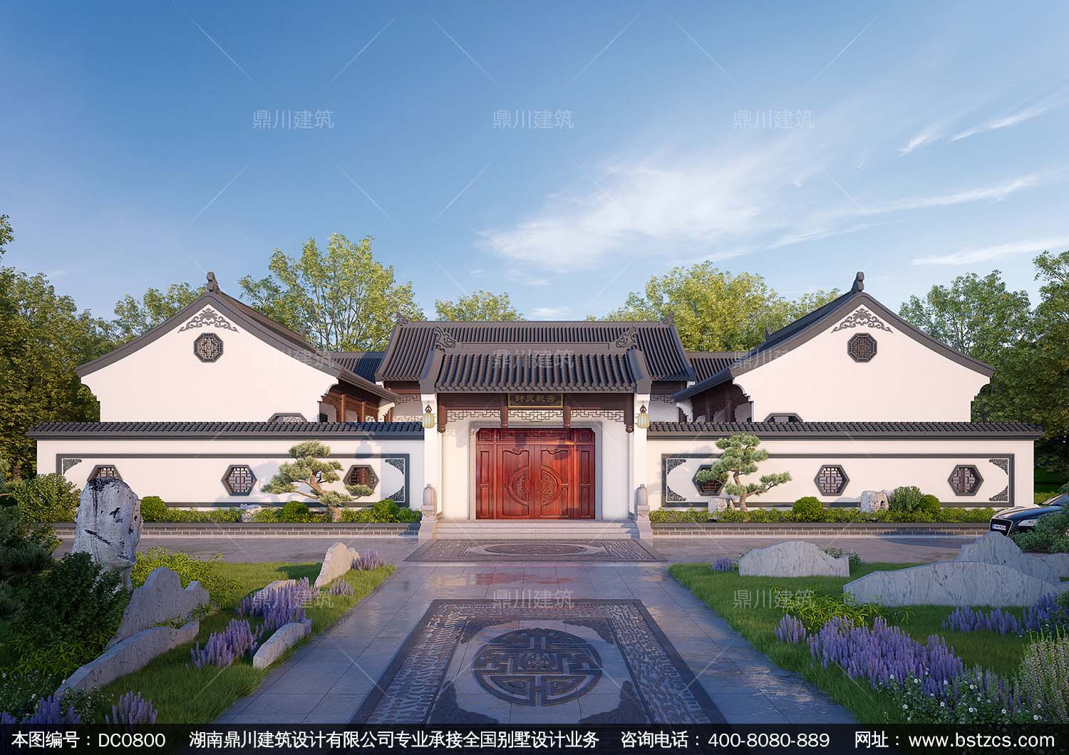 二層中式小三合院全套施工圖紙_農村三合院設計效果圖,鼎川建筑