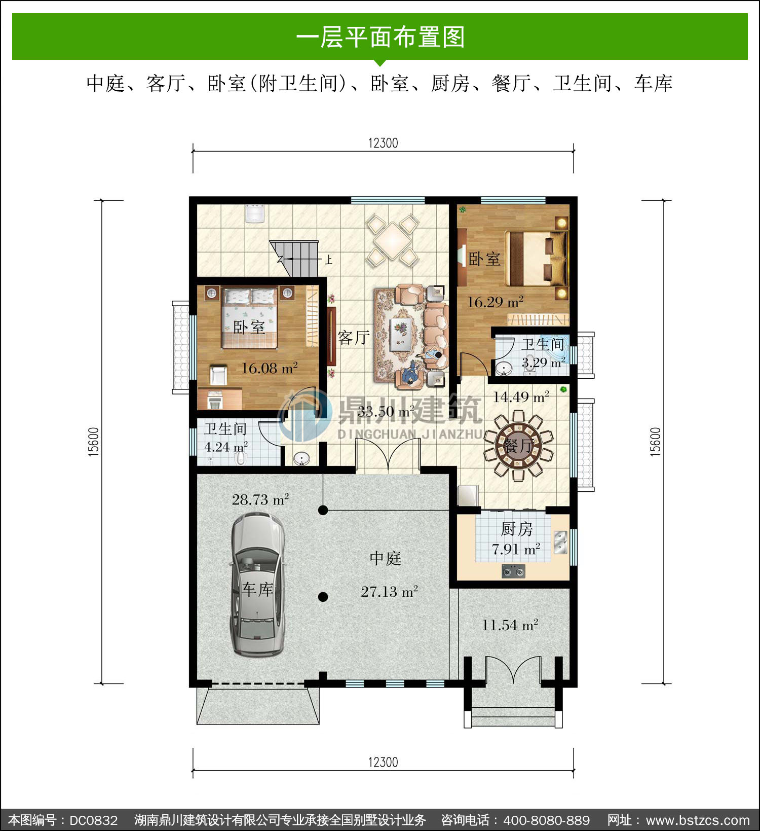 中式二層帶院子房屋施工圖紙及效果圖_新農(nóng)村兩層自建房設(shè)計,鼎川建筑
