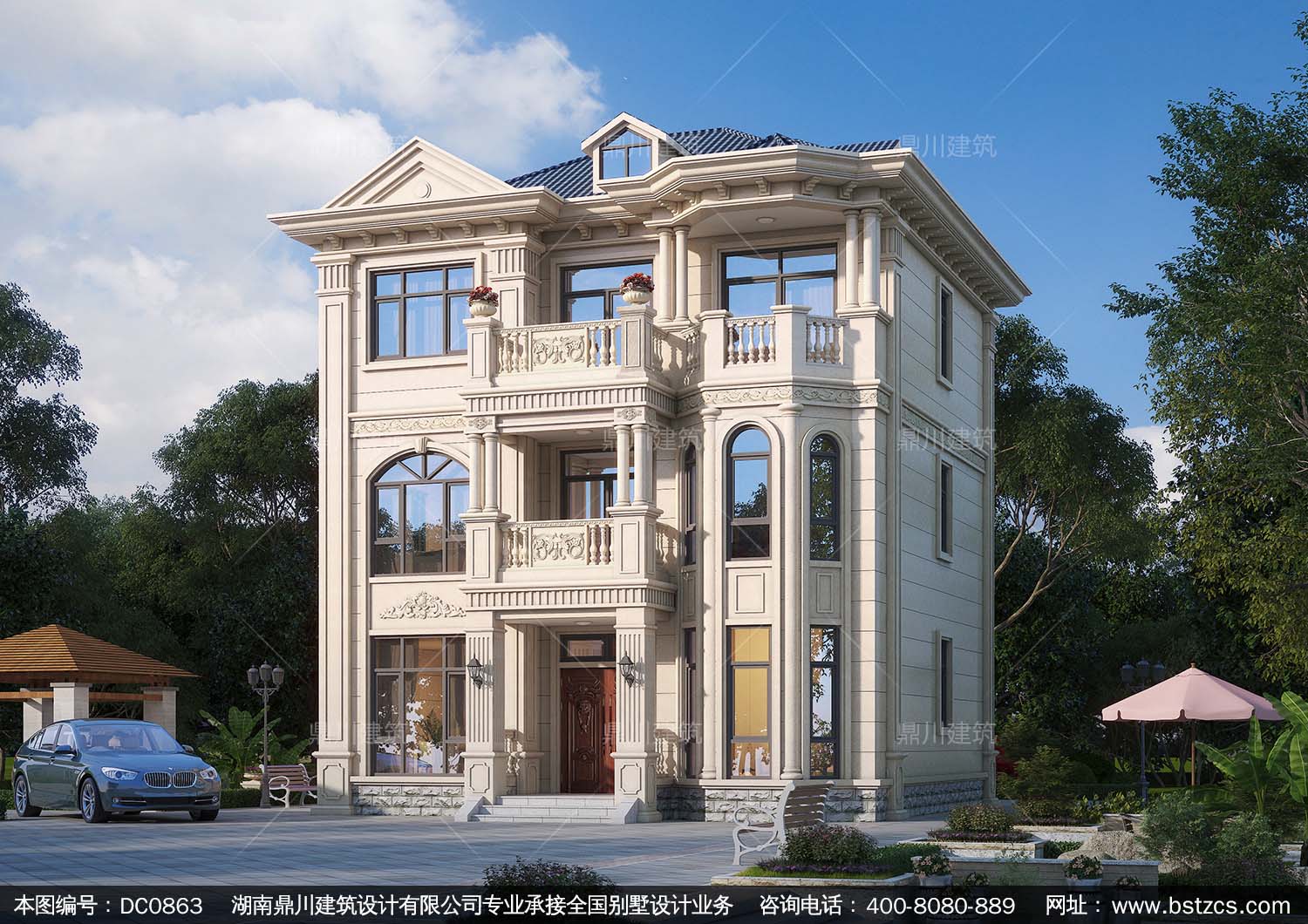 歐式三層帶陽臺別墅施工圖紙及效果圖_新農(nóng)村自建房屋設(shè)計(jì),鼎川建筑