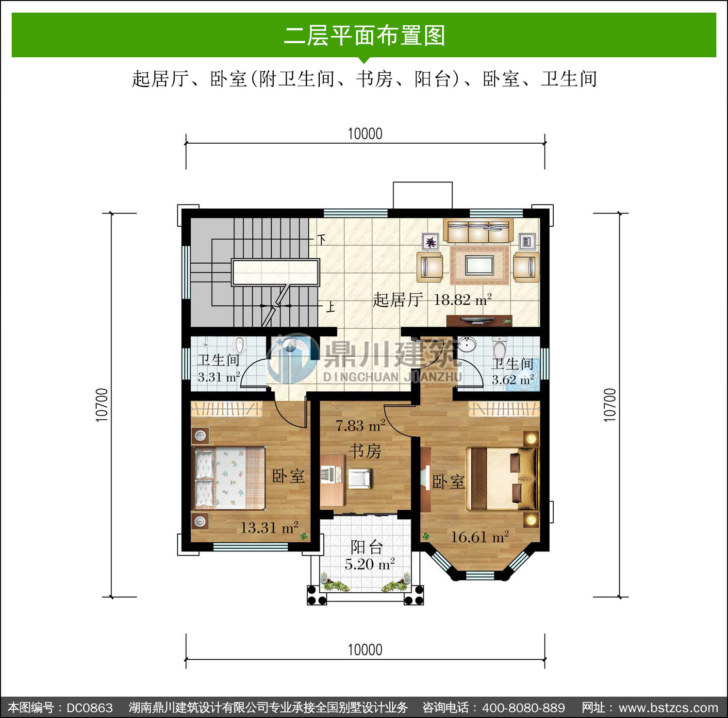 | 二 層: | 起居廳、臥室(附衛(wèi)生間、書房、陽臺)、臥室、衛(wèi)生間 | |||