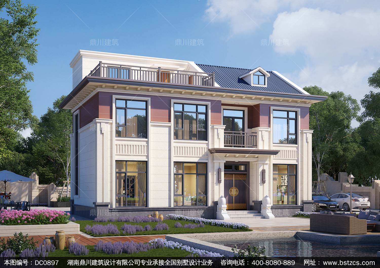 新農(nóng)村二層帶半露臺別墅施工圖紙及效果圖_鄉(xiāng)村自建房設(shè)計(jì),鼎川建筑