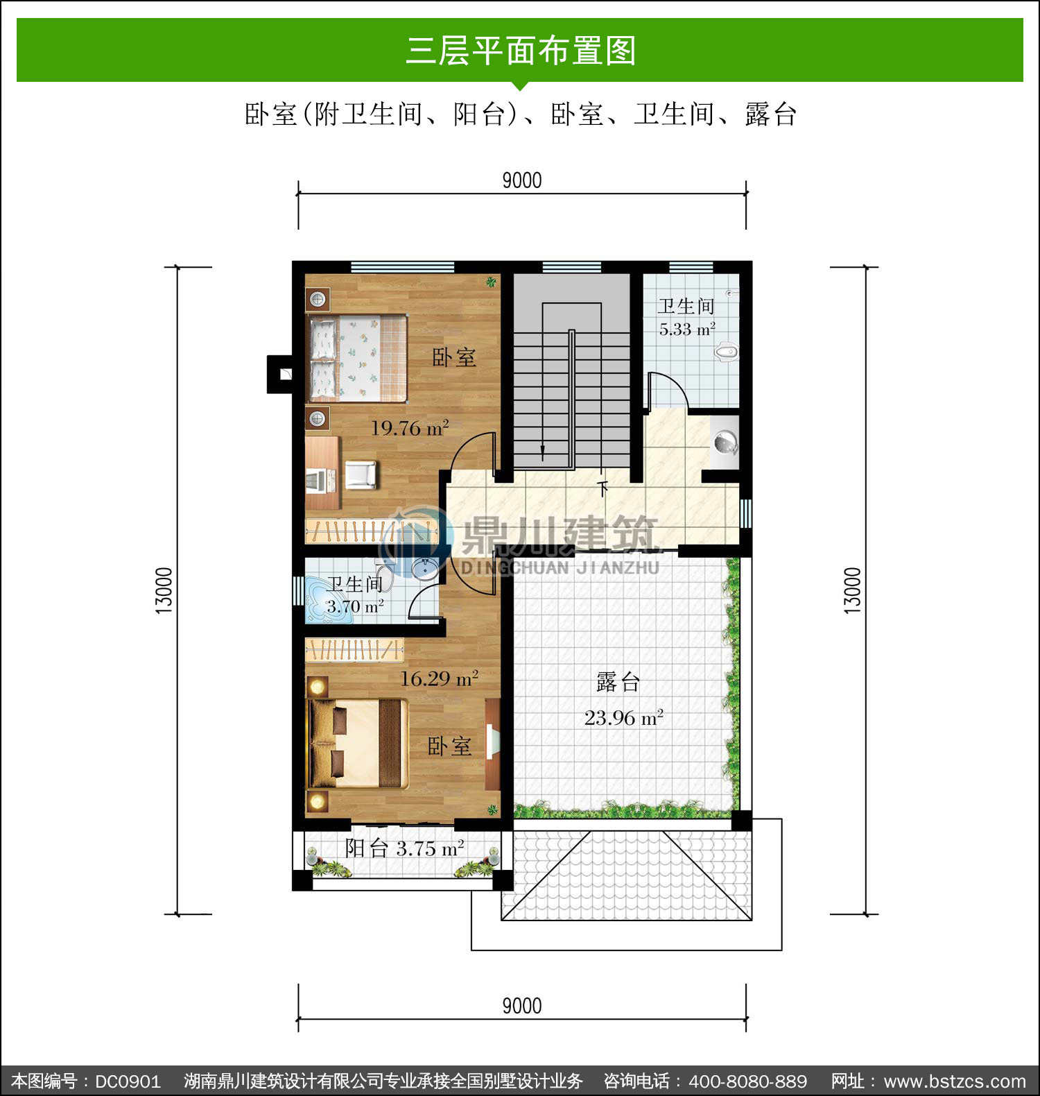 | 三 層: | 臥室(附衛(wèi)生間、陽臺)、臥室、衛(wèi)生間、露臺 | |||