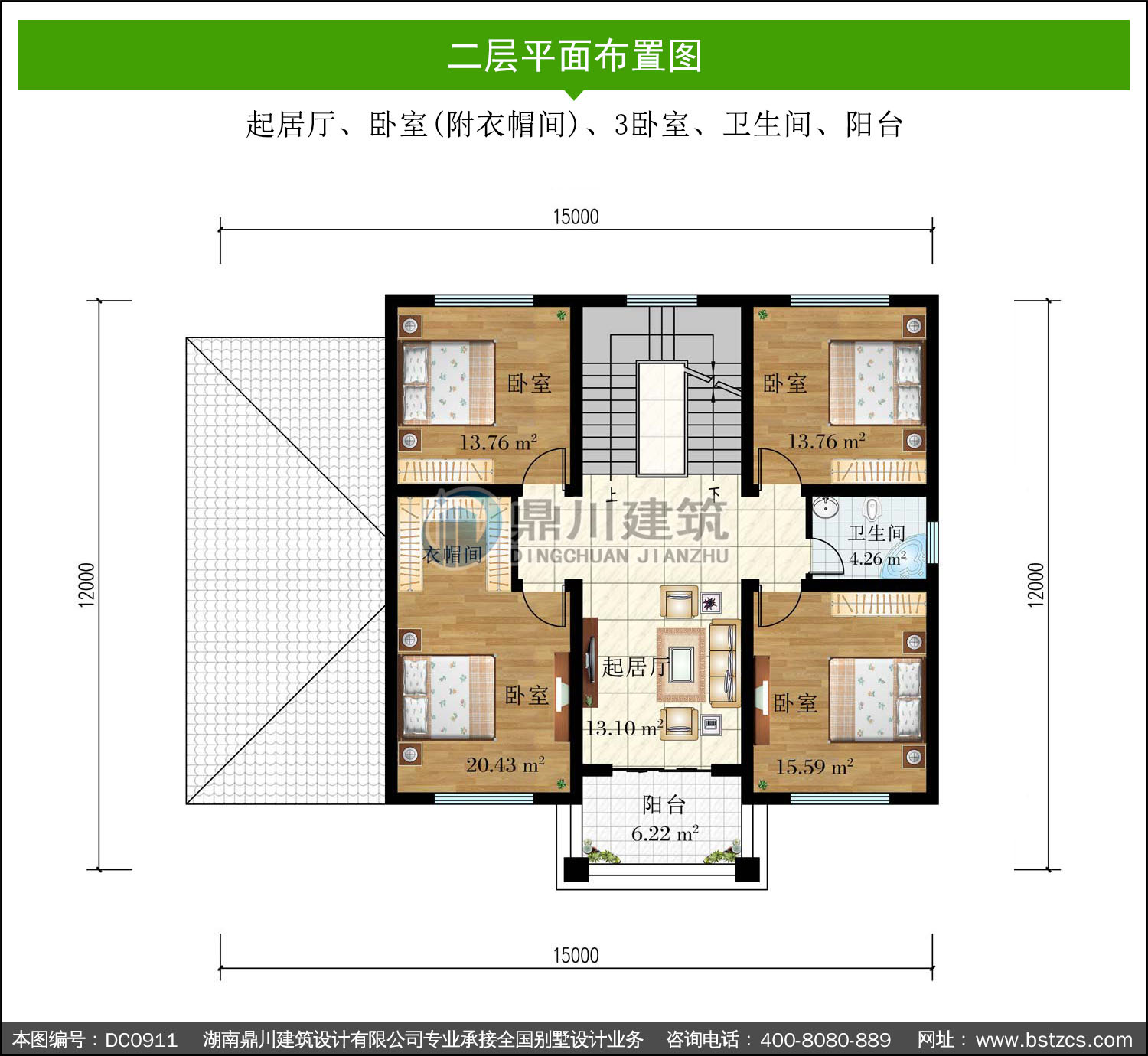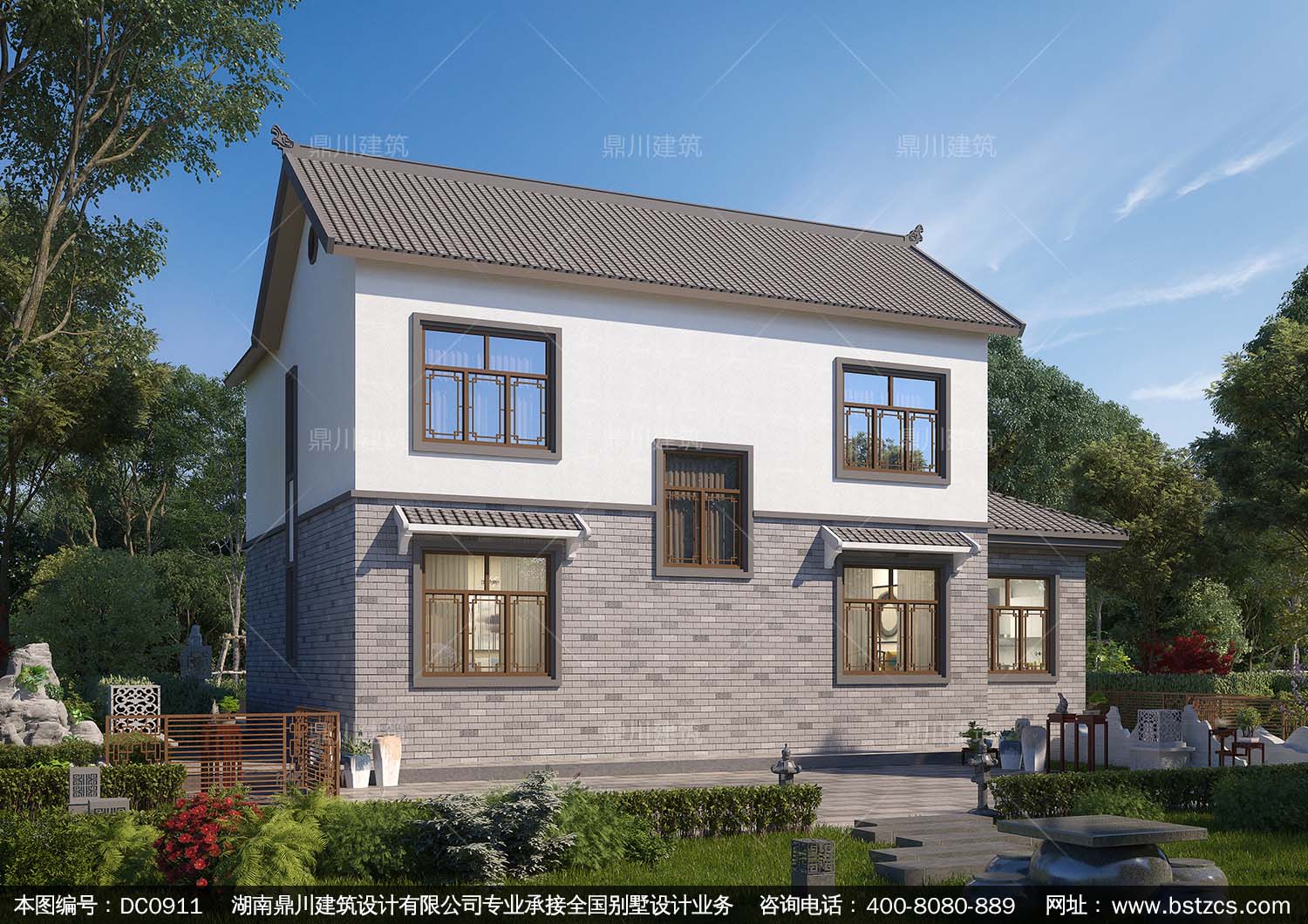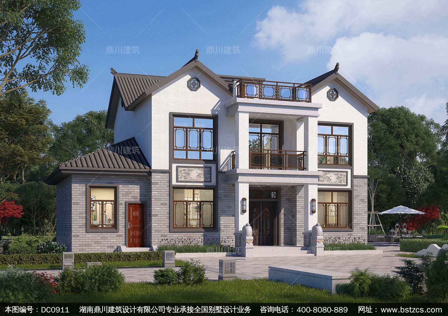 二層中式帶露臺別墅施工圖紙及效果圖_農(nóng)村自建房屋設(shè)計,鼎川建筑
