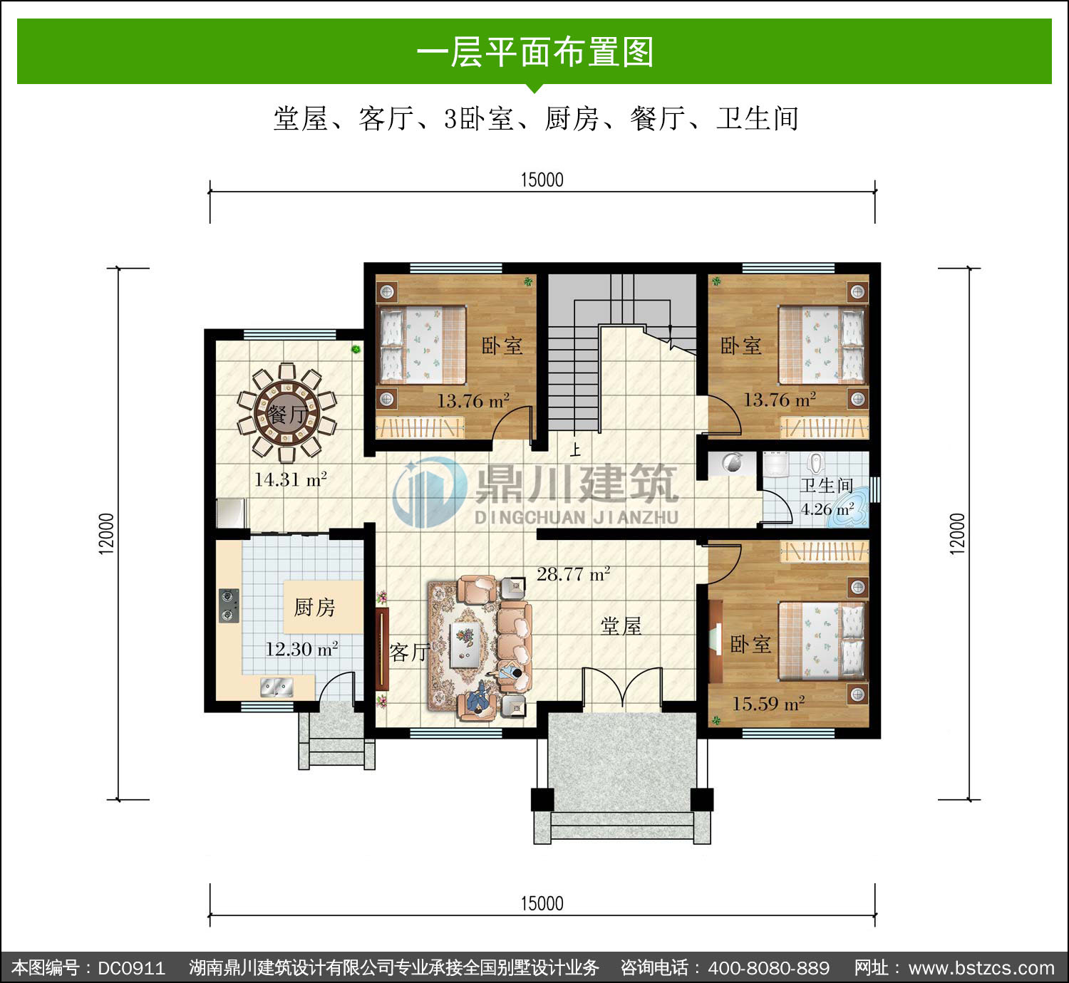 | 一 層: | 堂屋、客廳、3臥室、廚房、餐廳、衛(wèi)生間 | |||