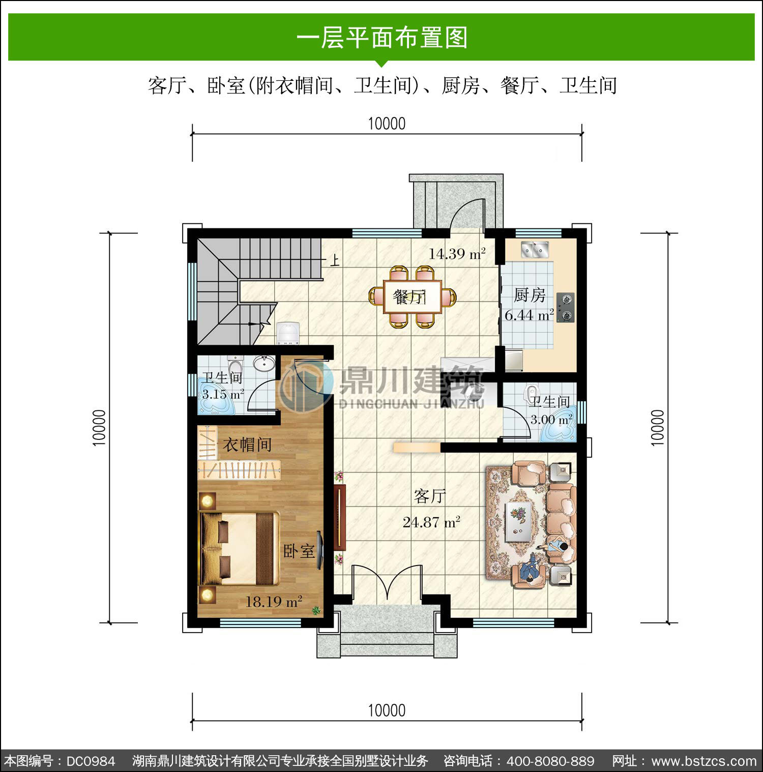 | 開(kāi)間: 10米 | 進(jìn)深: 10米 | 占地面積: 104.86平方米 | 建筑面積: 292.5平方米 |