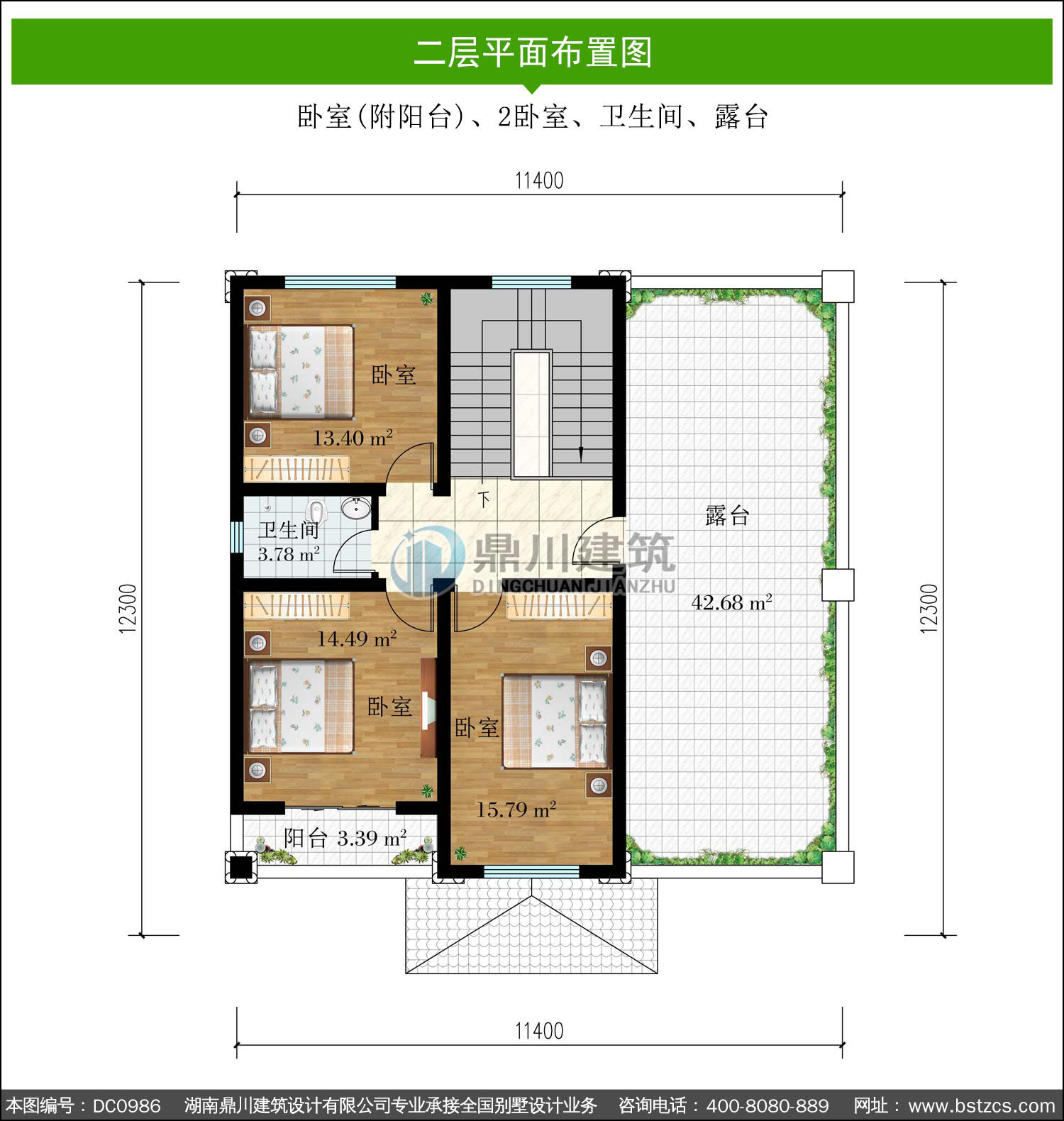 | 二 層: | 臥室(附陽臺)、2臥室、衛(wèi)生間、露臺 | |||